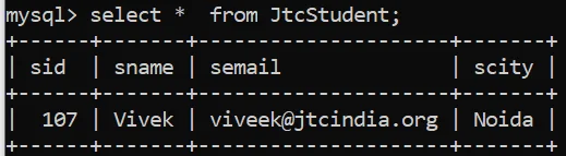 insert into jtcStudent(sid, sname, semail, scity) values (id, name,email,city);
