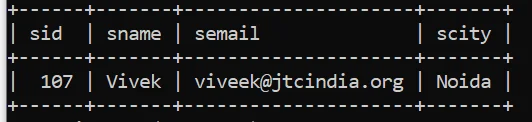 SELECT sname, semail, scity INTO name, email, city from JtcStudent where sid = id;