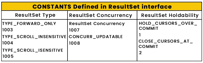 • ResultSet is an interface available in java.sql package.