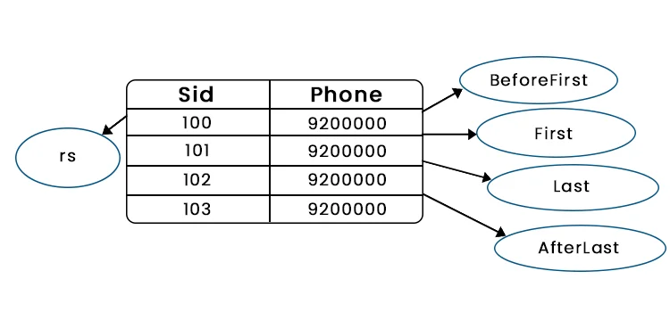 When ResultSet object is created then initially ResultSet cursor points to before to the first record.