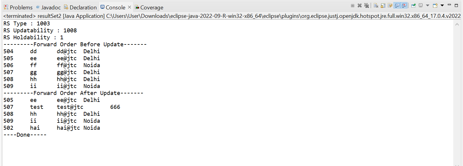 rs.updateString(3, "hai@jtc");
