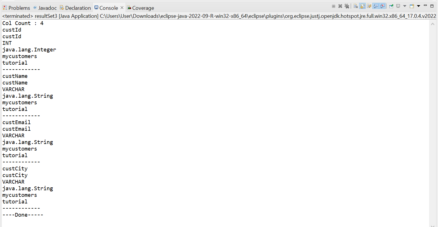 public ResultSetMetaData getMetaData()