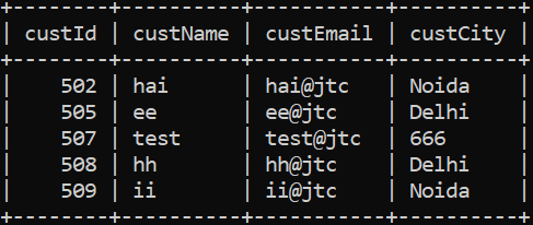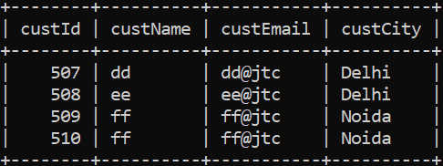 • Assume that there is a table called jtcstudents with 4 columns -