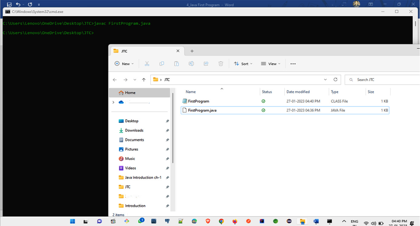 After successful program compilation, as you can see in the above image, we have a .class file which is FirstProgram.class and now we can proceed to run the Program.